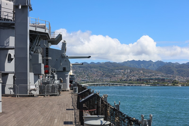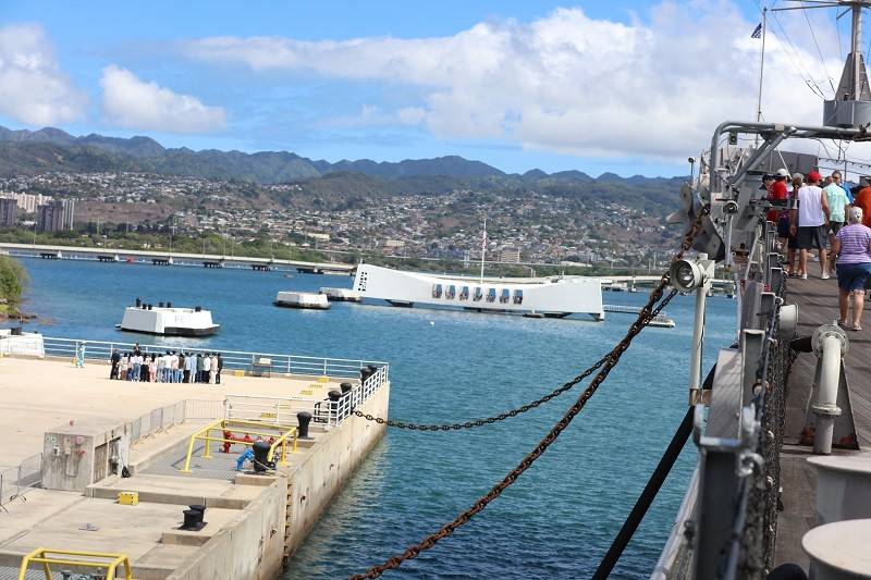 从密苏里号战列舰看亚利桑那号战舰纪念馆