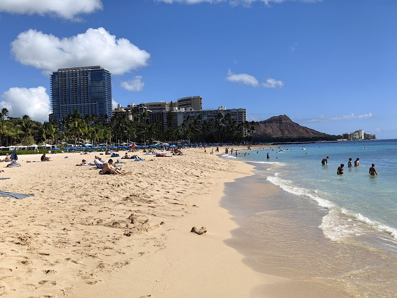 晚上,游览威基基海滩Waikiki、卡拉卡瓦大道Kalakaua Avenue等地。