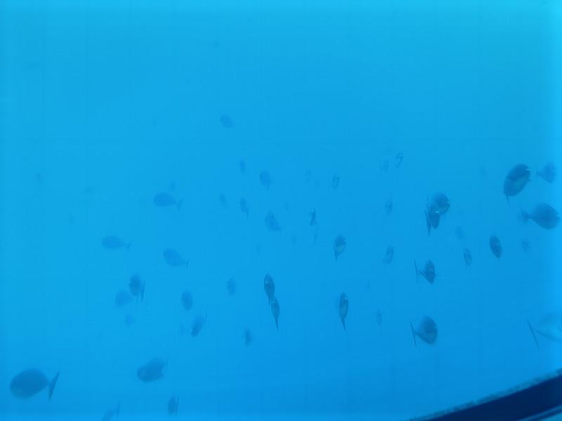 感觉船开了好久,一名工作人员指着不远处的海面说了什么,我就定睛看着,不一会儿,海面泛起白浪,忽然一艘观光潜艇跃出海面,引起人们呼声。两船停靠一起后,大家依次顺着楼梯进入船舱(楼梯是垂直的)。舱内有两排座椅是背靠背的,游客坐下后面对着舷窗。每个人面前都刚好有一扇透明舷窗,可观赏海底世界。游览时间大约1小时30分钟(潜艇45分钟)。