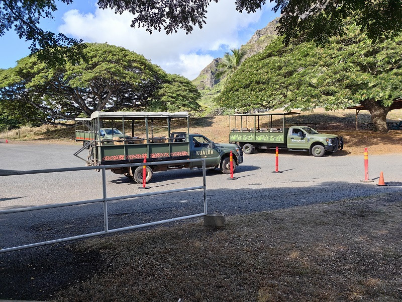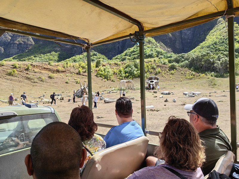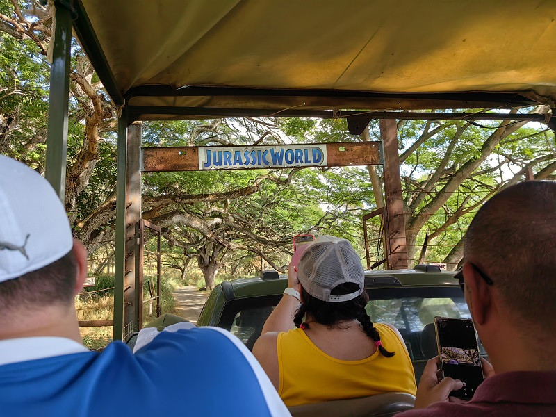 古兰尼牧场举办各种各样的娱乐项目供游客选择。项目很多,有骑马、ATV之旅(四轮摩托)、电影之旅(小卡车、大巴车)、海洋之旅等等,我们购买的项目是Jurassic Adventure Tour,我翻译成“侏罗纪冒险旅行”,时长2.5小时,9:20开始,11:50结束。就是乘坐敞篷小卡车游览,到侏罗纪有关的拍摄地参观拍照。