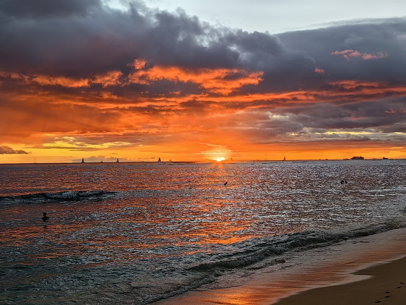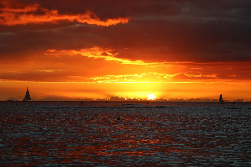 娱乐项目结束后,已接近12点,我们返回酒店,本打算下午去普吾瓦拉卡州立公园Puu Ualakea state Park(可远眺檀香山高楼及日落),观赏风景,因为有些累了,就在酒店休息,晚上还是海滩观日落,逛商业街、用晚餐。