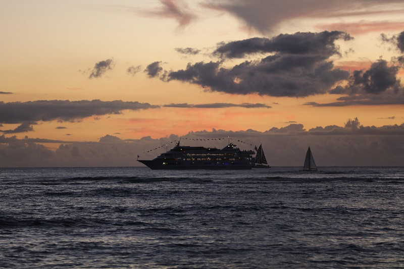 晚霞中的游轮