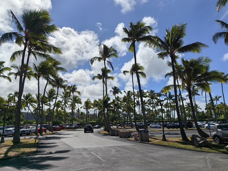 沿Hamehameha Hwy前行,看见路标右转进Kvilima Dr,往里走,会看到一大片停车场,车也很多。