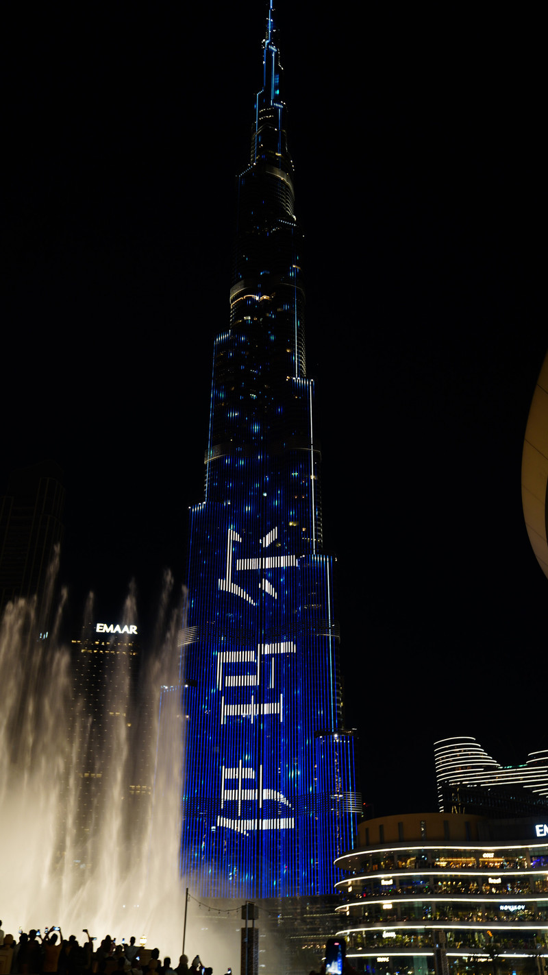 哈利法塔的灯光秀和音乐喷泉,如果不早去基本上你无法找到最好的观景点,整个喷泉周边人山人海。在灯光和喷泉演绎下,高达828米,楼层162层得哈利法塔显得妖娆和壮观。