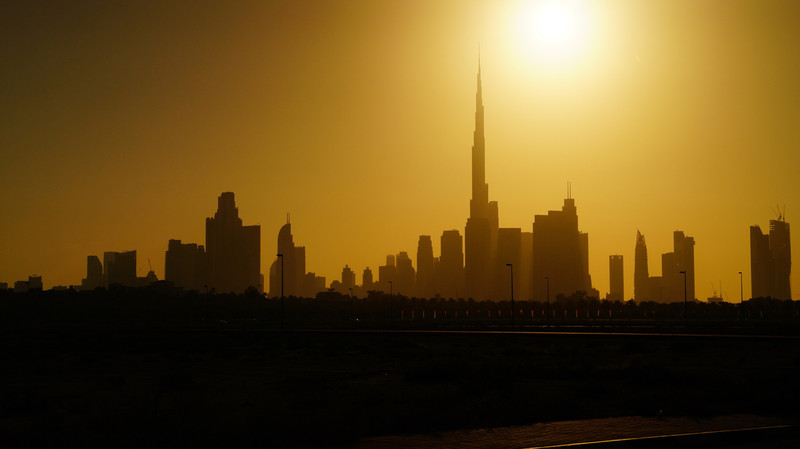 返回迪拜机场的路上,意外发现有一个地方非常适合拍摄迪拜摩天建筑群的剪影照片。