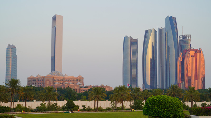 从总统府远眺由五座摩天大楼组成的阿提哈德塔,也是众多电影的取景地。