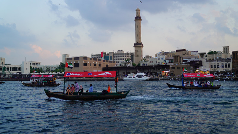 中午返回酒店休息,下午4点左右乘坐地铁前往迪拜河游玩。10年前后都是一元一次的小木船穿越迪拜河绝对值得体验,在船上欣赏落日和海鸥追逐,会让你完全放松。