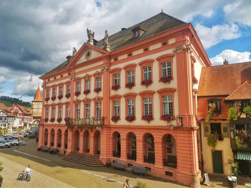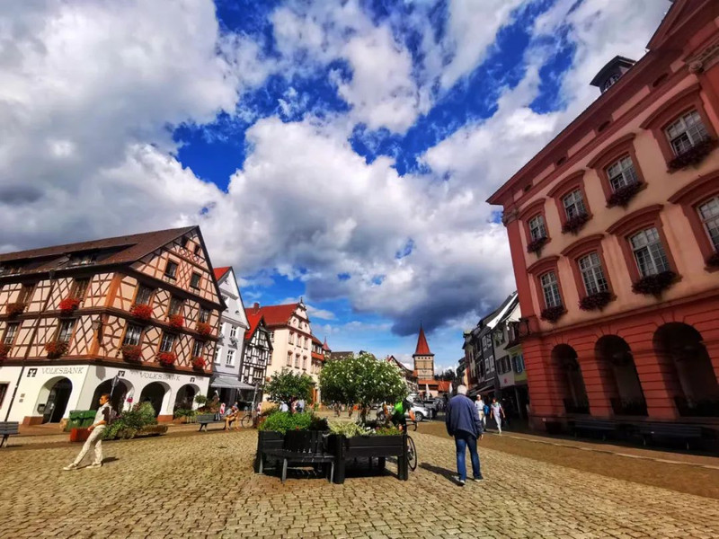 自驾45分钟或坐火车35分钟到根根巴赫。整个巴登符腾堡州,特别是黑森林地区,不乏漂亮的小镇,但是根根巴赫总是被称为是“黑森林小镇珍珠“。自驾进入根根巴赫小镇中心,我被中世纪风格的建筑环绕,半木结构的房屋是德国南部的标志建筑,家家户户在窗户上种满了天竺葵和牵牛花,确实美得如同童话,之前的疑惑自然也迎刃而解。