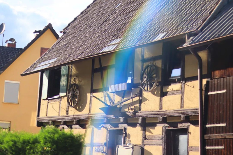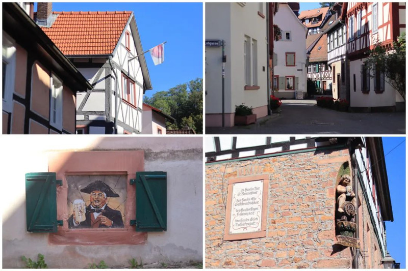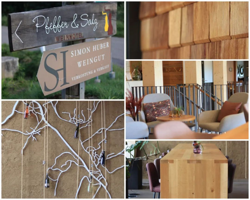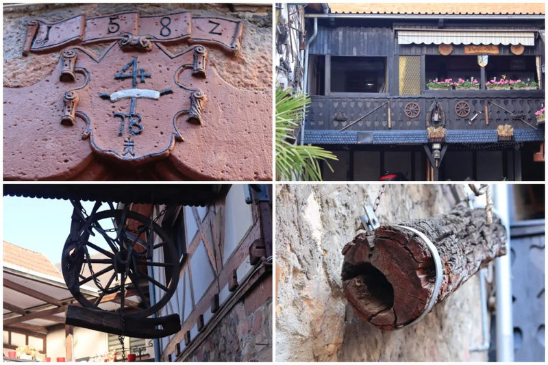 根根巴赫还有一座1000年前由僧侣种植的圆形葡萄园,如今附近有很多酒庄供游客游览,我们预约拜访了一个叫做胡椒与盐(Pfeffer & Salz)的酒庄酒店,从古镇中心往外走,一路上的农舍风景极好,和市中心精致的半木建筑不同,少了精致,悬挂着各种农具和动物雕塑,更多的是蓬勃的生命力。