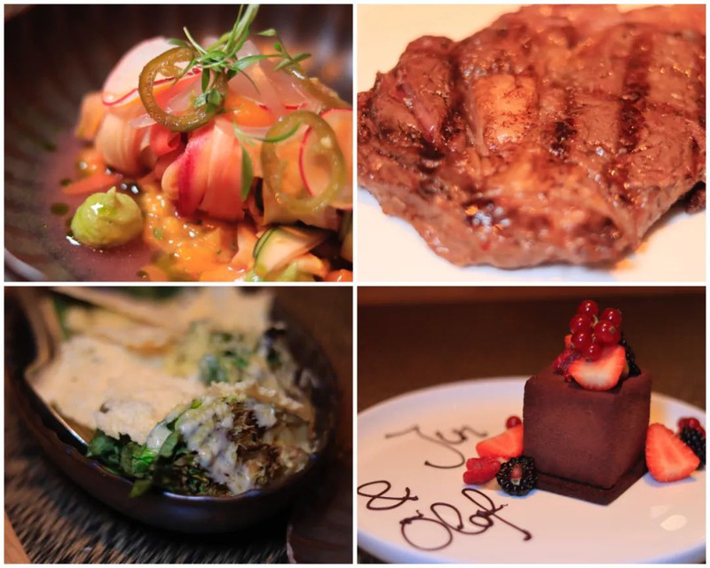这家餐厅在烹饪上力求卓越,特别推荐的扒类菜品,在餐厅中间,烤扒大师用来自西班牙拉科鲁尼亚的设计师烤架为大家菜肴,来自黑森林的木材让这里闻起来像是回到了奶奶家的森林小屋。每一道菜都是一场味觉盛宴,精心挑选的食材和独特的调味使得每一口都充满惊喜。最后那个写着我们名字的甜品,简直是对我们的大惊喜,暴雨的夜晚,被这里的爱治愈。