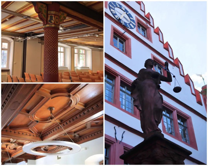 在博物馆二楼窗户,可以看到市政厅的外墙,可以说是根根巴赫最为举世闻名的建筑。根根巴赫四季皆美,但最为出圈的,当属冬季的降临节日历。寒冷的12月,德国人的幸福感都是靠在圣诞节前每天打开一个倒数日历的礼物的惊喜来维系。