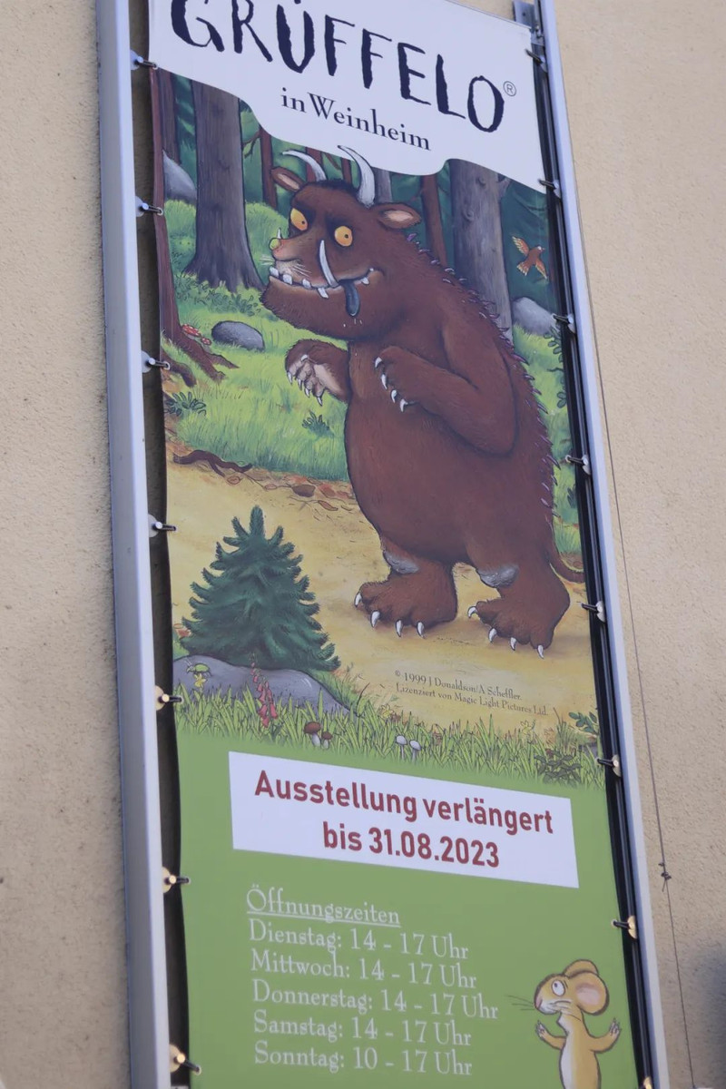 万海姆有很多徒步路线,最有童心童趣的还是咕噜牛(Gruffelo)相关的徒步,这是一条一定要和宝宝一起去探索的路线。咕噜牛是一本英国的儿童读物,咕噜牛步道 (Gruffalo Trail)是德国南部第一条童趣类型的道路。