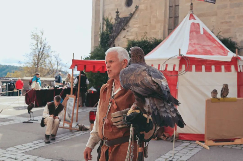格里芬表演也是一个强互动性的表演,适合阖家观赏,主持人会选拔一个小朋友上台,按照中世纪的服饰为他装扮上,甚至还给了他一个称号,这个幸运的小孩还可以戴上手套感受呼唤老鹰,老鹰威风凛凛的停留在手臂上,小朋友真是肉眼可见的骄傲啊。