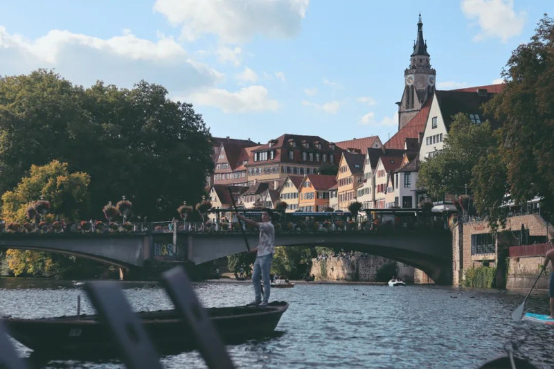 乘坐著名的“Stocherkahn”游船也是在这里必做的旅行项目,这是图宾根独有的游船,由一根长木杆操纵,沿途可以欣赏风景如画的内卡河两岸美景,有彩色房子的一边被称为是图宾根的“甜蜜的一面”,任何和图宾根相关的一定都有一边河岸的存在。
