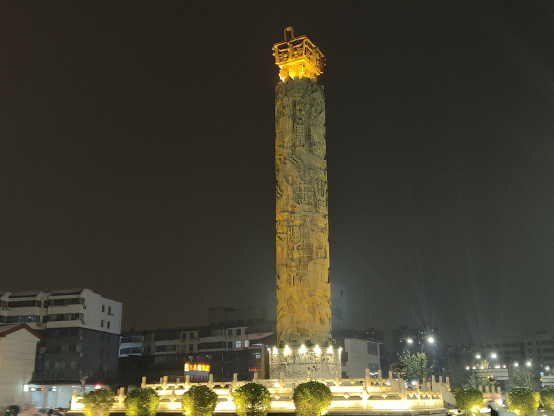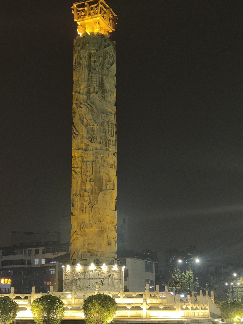 看到九龙鼎当然不是我们刻意而为之,实在是因为从十字街出来,乘坐公交车的时候,一眼就看到了十字街口矗立着的那根柱子,雕刻着的龙纹十分华丽,一下子就吸引了我们的目光。于是,急忙查了一下地图,果然发现有个标志:九龙鼎。