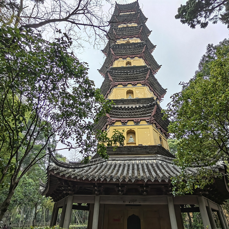 晋代古刹阿育王寺。一张侧身塔,是结合的不知道怎么回事