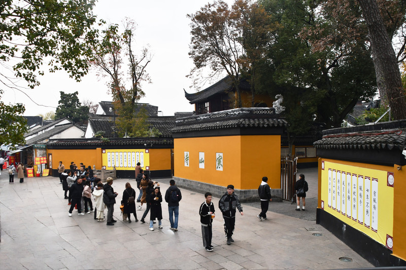 寒山寺位于苏州市姑苏区,始建于南朝萧梁代天监年间(公元502~519年),已有一千四百多年的历史,初名"妙利普明塔院"。寒山寺占地面积约1.3万平方米,建筑面积三千四百余平方米。寒山寺属于禅宗中的临济宗。唐代贞观年间,当时的名僧寒山、希迁两位高僧创建寒山寺。1000多年内寒山寺先后5次遭到火毁(一说是7次),最后一次重建是清代光绪年间。因唐代诗人张继的名诗《枫桥夜泊》中“姑苏城外寒山寺、夜半钟声到客船”一句而闻名天下,历史上寒山寺曾是中国十大名寺之一,是有名的祈福胜地,每天来寺中撞钟进香、祈求平安的信徒络绎不绝。我最初对寒山寺的认知也是来自《枫桥夜泊》中“姑苏城外寒山寺、夜半钟声到客船”这首古诗。(门票:20元)