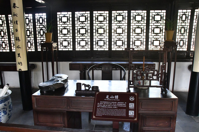 见山楼介绍:此楼三面环水,两侧傍山,是一座江南风格的民居式楼房。底层被称作“藕香榭”,沿水的外廊设吴王靠,小憩时凭靠可近观游鱼,中赏荷花,远则园内诸景如画一般地在眼前缓缓展开。上层为见山楼,取自陶渊明名句:“采菊东篱下,悠然见南山。” ,在楼上远眺,可将中园美景尽收眼底。