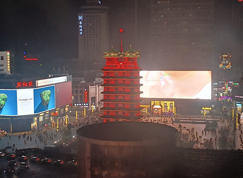 这里是 郑州 市中心,道路复杂,酒店在一家大厦楼里,找酒店花了十几分钟。那里寸土寸金,酒店还没停车场。没办法,我们只好停在酒店附近广场边的公共停车场,过夜24小时30元封顶。办理完入住手续,停好车,我们就到马路对面的商厦里吃晚饭。