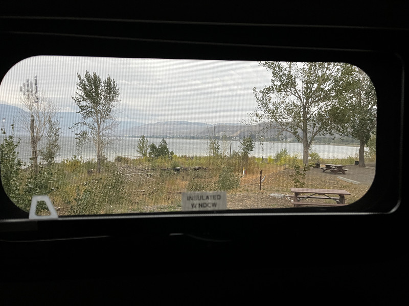 今晚的目的地是甘露市(Kamloops),网上有介绍在甘露市(Kamloops)附近的托马斯湖(Thompson River)可以看到鲑鱼洄游,于是依据导航找到这条湖,刚好湖边有个房车营地,住下