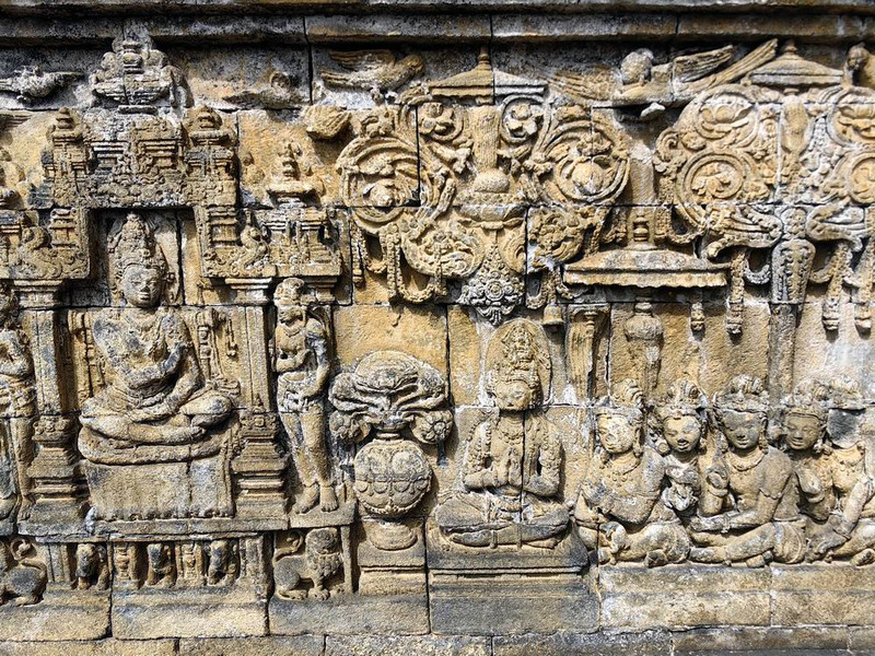 每一层浮屠都布满了精妙的浮雕,讲述着佛家的典故。照片摄于婆罗浮屠。