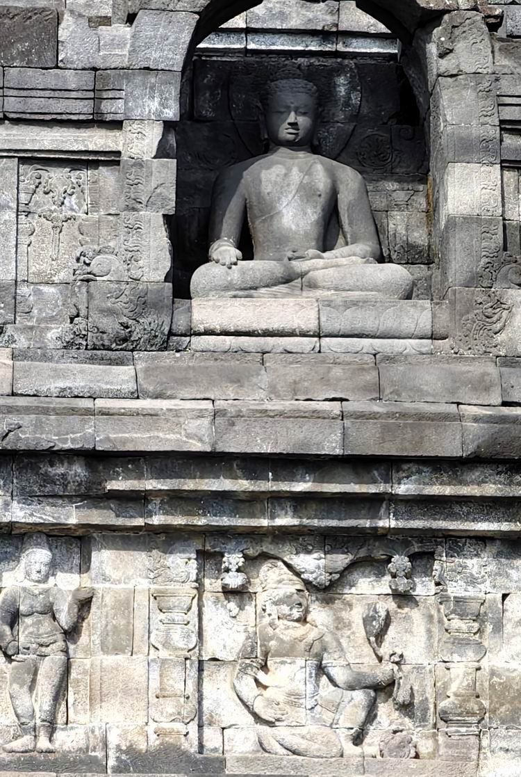婆罗浮屠的名字来自梵语「Vihara Buddha Ur」,意思就是「山顶的佛寺」。照片摄于婆罗浮屠。