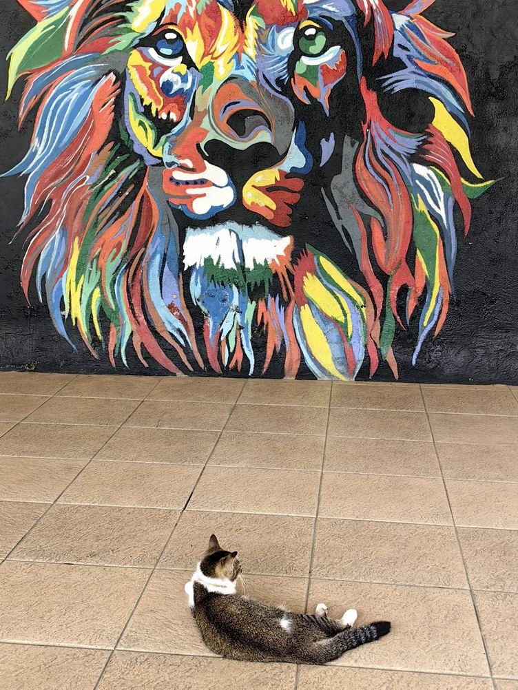雄壮的白马、骇人的巨蟒、咆哮的金刚、怒吼的雄狮“挺立”墙上,仿佛随时可以跃墙而出。照片摄于彩虹村。