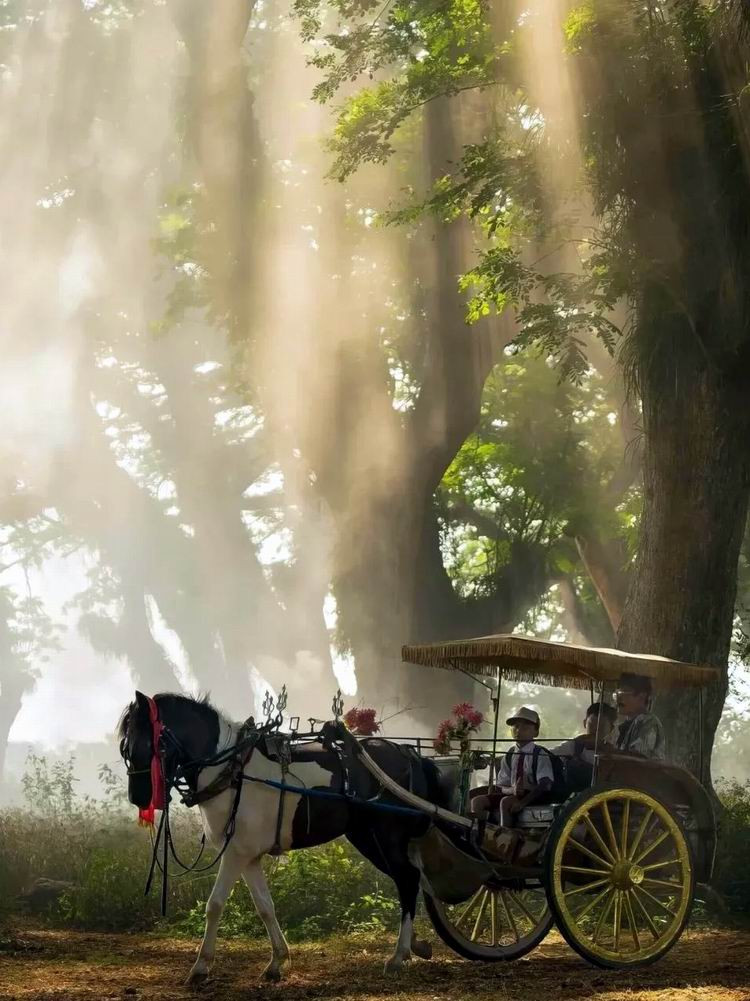 还可以租个马车遛一圈。照片摄于德贾瓦坦森林。