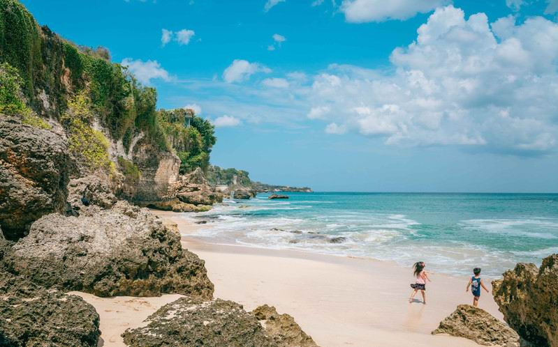 像它的名字一样,圣洁又柔软的白沙滩环绕在其身旁的岩石像一只巨手,将这片沙滩环绕保护。