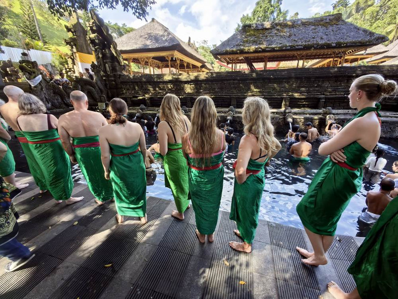 圣泉寺是巴里岛代表性三大庙宇之一。进入圣泉寺不能穿短裤,是对神明的不敬。穿长裤也要围一条长裙。