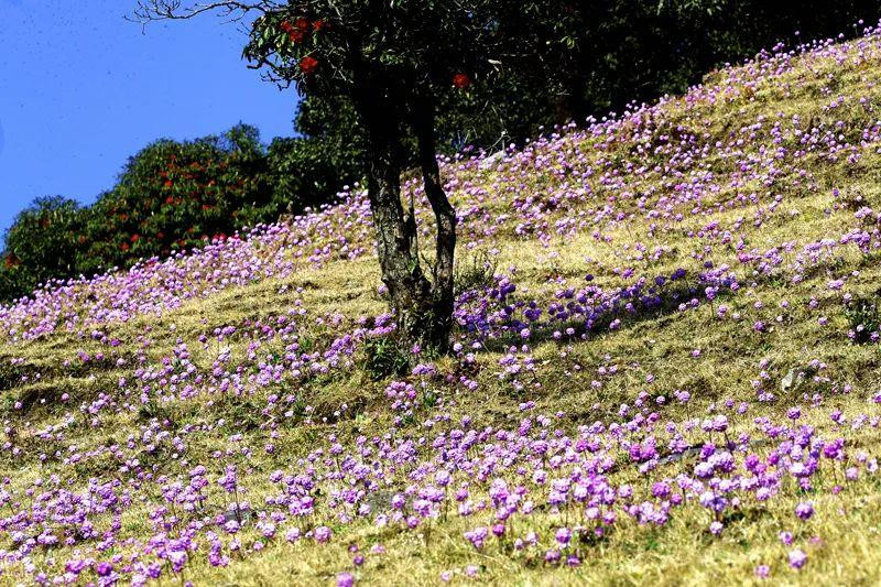 4. 腾冲高黎贡山:高黎贡山是腾冲地区的著名景点,山上植被丰富,春天时,报春花在山间盛开,景色宜人。