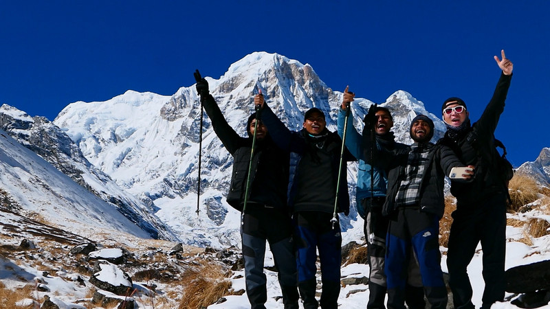 是时候该和她道别了,每个旅人来去匆匆,都还有自己回家的路要走。当每场宴会过了最高潮,做客的人没了兴致,都在忙碌中撤了席。但回望安娜普尔纳Ⅰ峰,她依然美丽,依然展现着热情,下山的路上又迎来了今天冲顶的人,他们正像昨天的我自己,最多被问到的就是How far,我也很有耐心的说almost there,并且数着告诉他们今天是第几个上山的人。直到这时,我又想起那句话,山就在那里。
