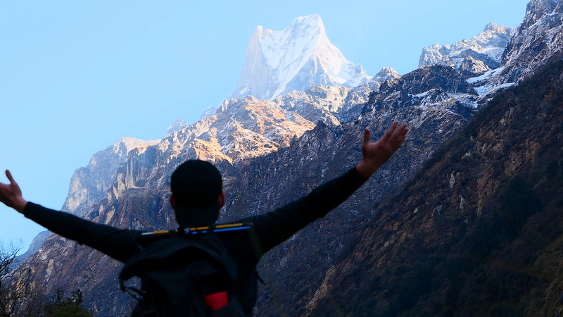 尽管经历了高反的折磨,尽管用尽浑身解数才到达这里,但一切在安娜普尔纳的 日照 金山面前都显得微不足道。