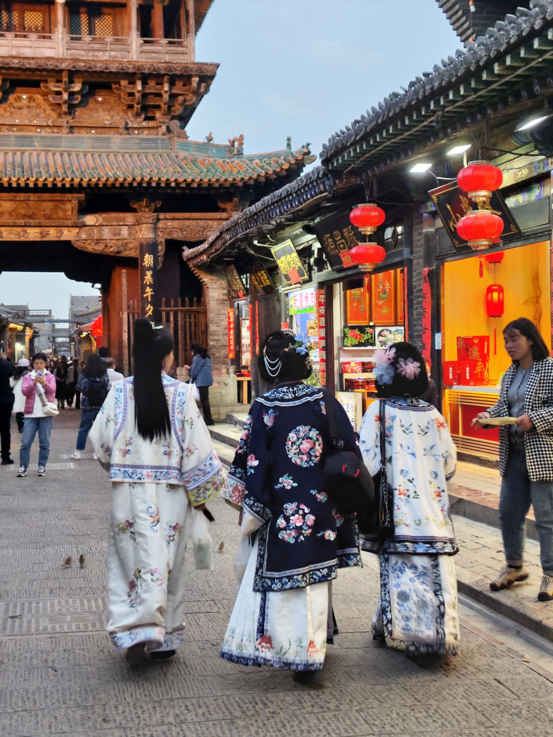 ❶:平遥→城墙(南门入口上城墙,向内可以看到古城居民生活会,向外 古城美景尽收眼底)→文庙(跨龙门)→城隍庙(琉璃艺术)→百川通(写汇票)→老赵家山西铜火锅(什锦火锅,好吃不贵)→西棠旅拍(上图就是在这拍的)→灯光秀(每晚八点迎薰门外)→逍遥游住宿(南大街,对面就是百川通,步行三分钟就是镖局和协同庆)