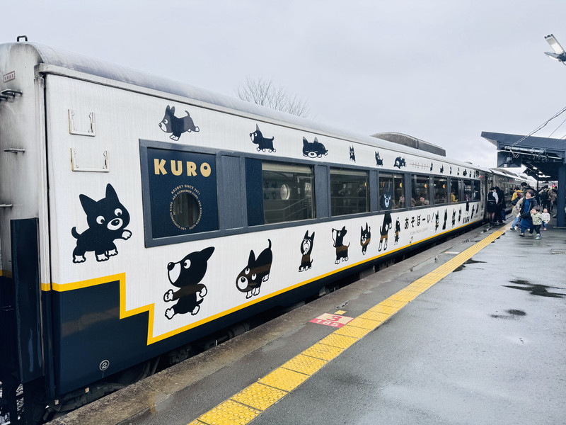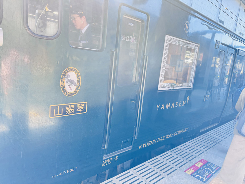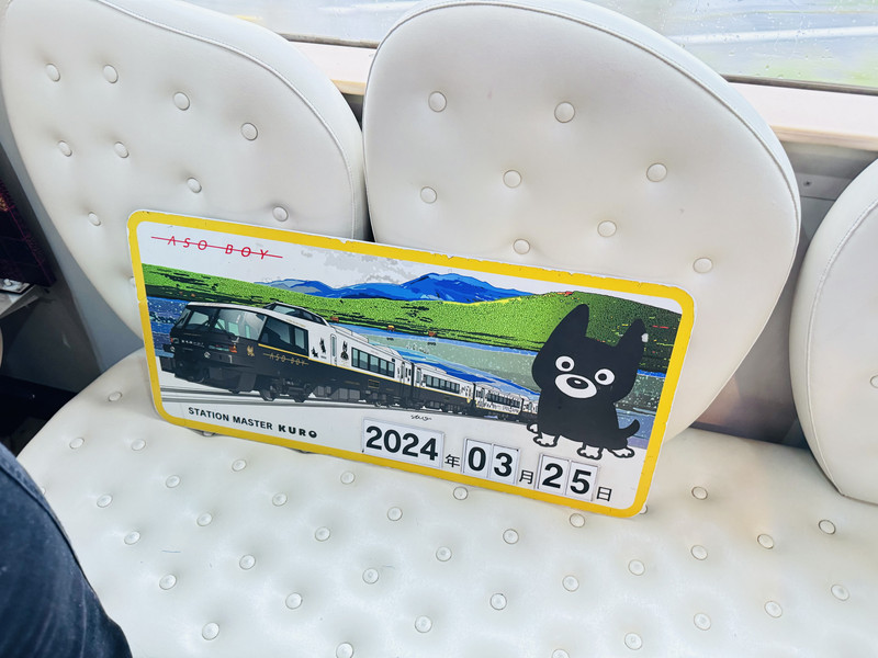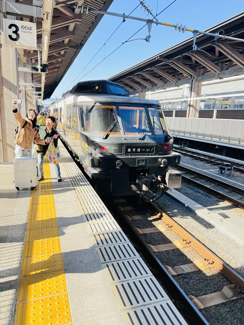 这天原计划是赶去福冈,去看牛高达然后随便逛一下的,一看大晴天,想着自己这次来的目的之一就是看阿苏山,没看到真的不甘心,于是改变计划,拖着大行李箱往阿苏山赶去。今天虽然起了大早,但是没有预约到阿苏男孩儿号,不过预约到了山翡翠了,也好,两辆开往阿苏的特别列车我都坐到了,开心。