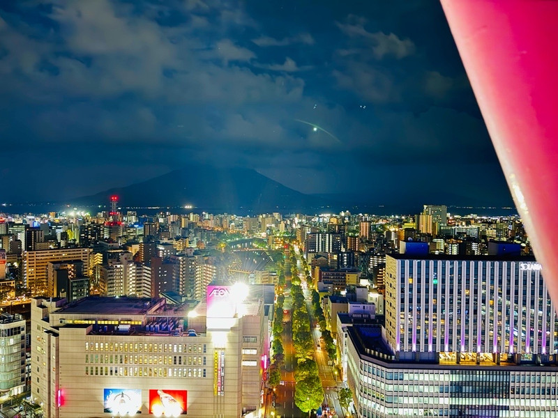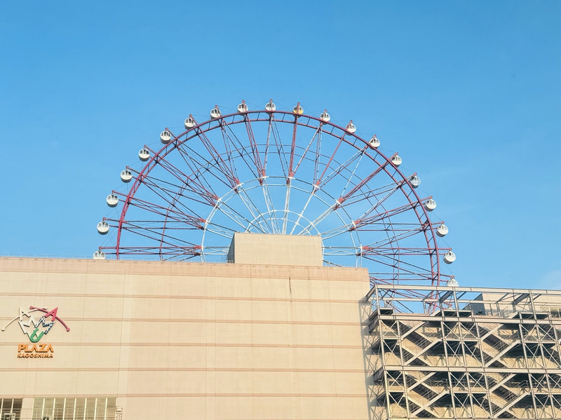 鹿儿岛中央站,和商场在一起的,酒店就在背面,JR站出来有专用通道直达,超级便利。晚上吃完晚饭坐了上面这个摩天轮,看樱岛是一绝。