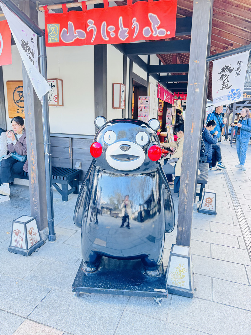 下午:去熊本,逛熊本熊广场(车站到酒店坐电车,用西瓜卡,酒店步行15分钟到,见熊本熊,19:00结束营业)