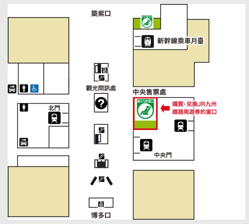 博多站换JR PASS的地方,是中间这个,不是上面筑紫口这个,别走错了