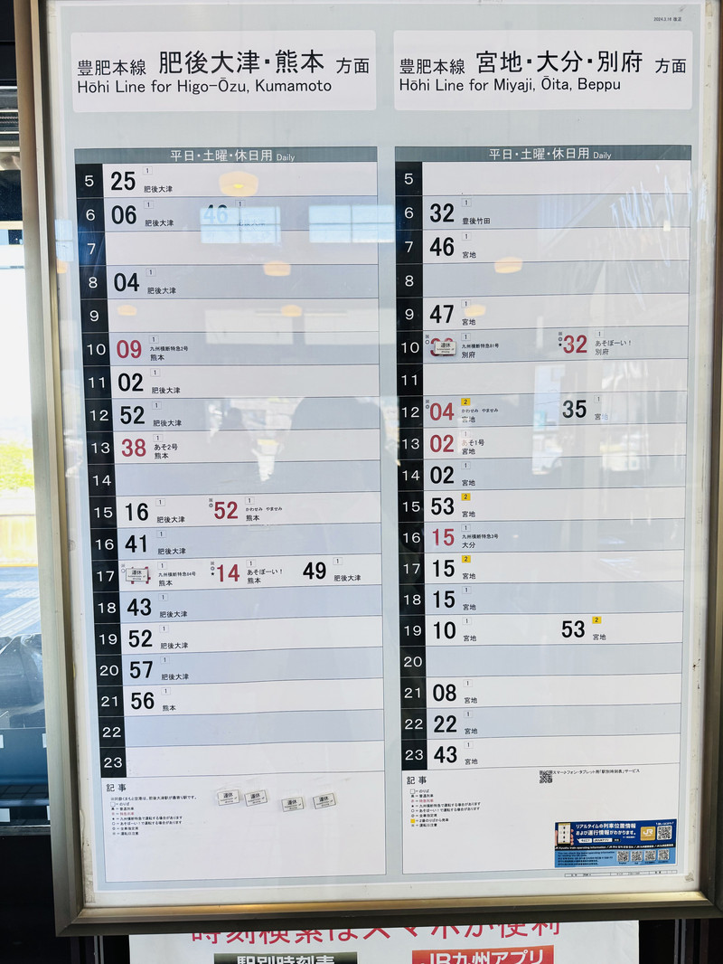 阿苏站火车时间点,大家看好时间,别错过了。