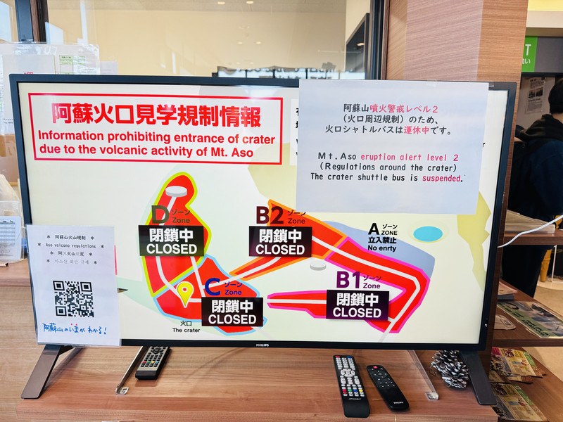 阿苏火山口现在上不去,貌似3月初小喷过,为了安全都不让上去了(如果你钱多,可以考虑坐直升机去看,这个没有禁止)