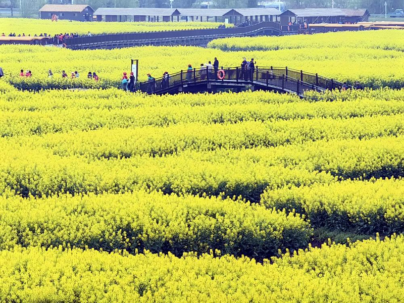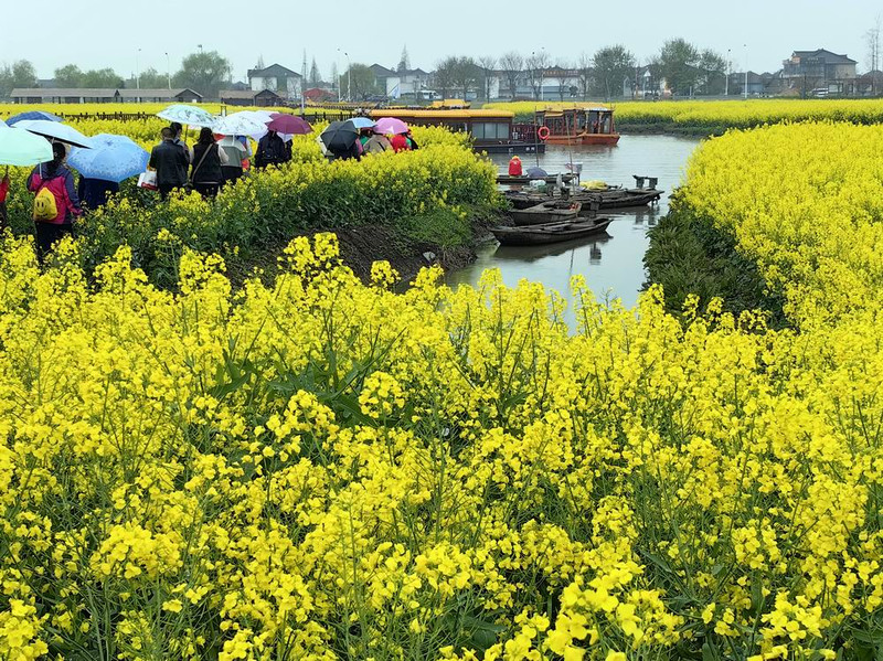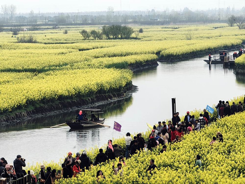 “金油菜花”的壮丽景色吸引了众多游客。照片摄于兴化千岛菜花景区。