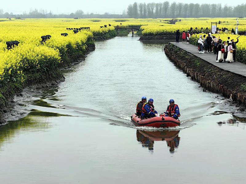 游客可以选择步行在田间小道中穿梭,感受被花海包围的浪漫。同时,景区内提供游船服务,游客可以泛舟水上,从另一个角度欣赏菜花美景。此外,还可以选择骑行或乘坐观光车游览。