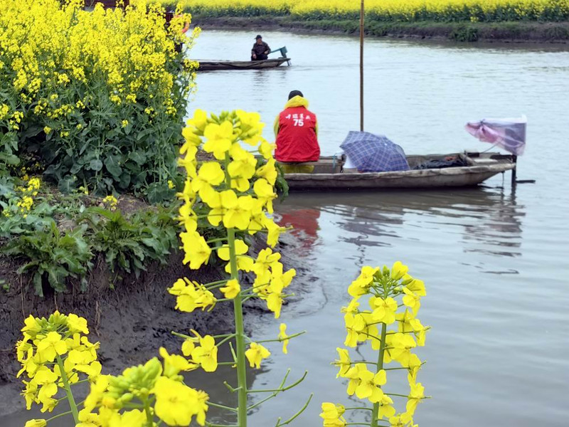 参观兴化千岛菜花景区要乘船。照片摄于兴化千岛菜花景区。