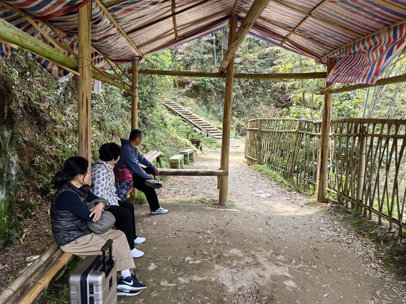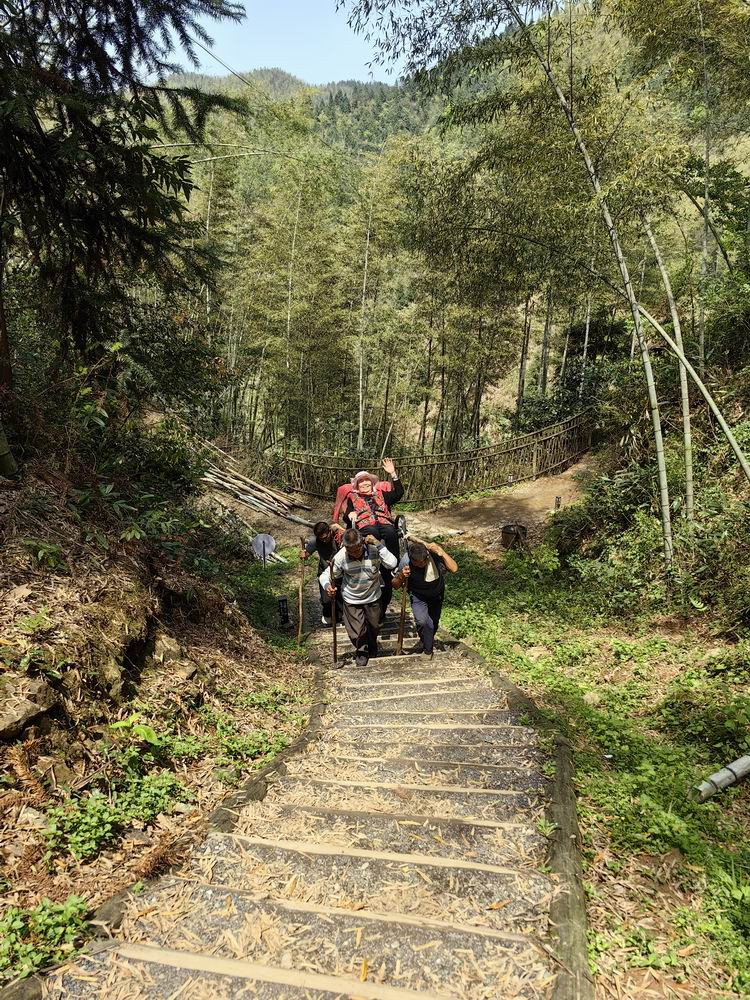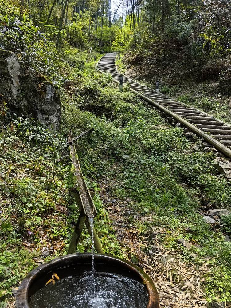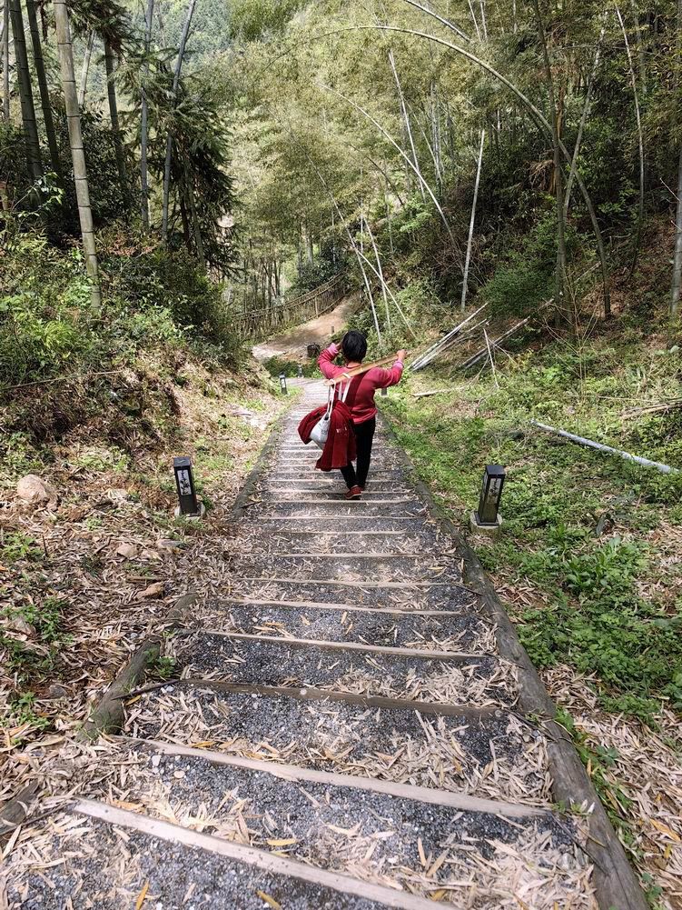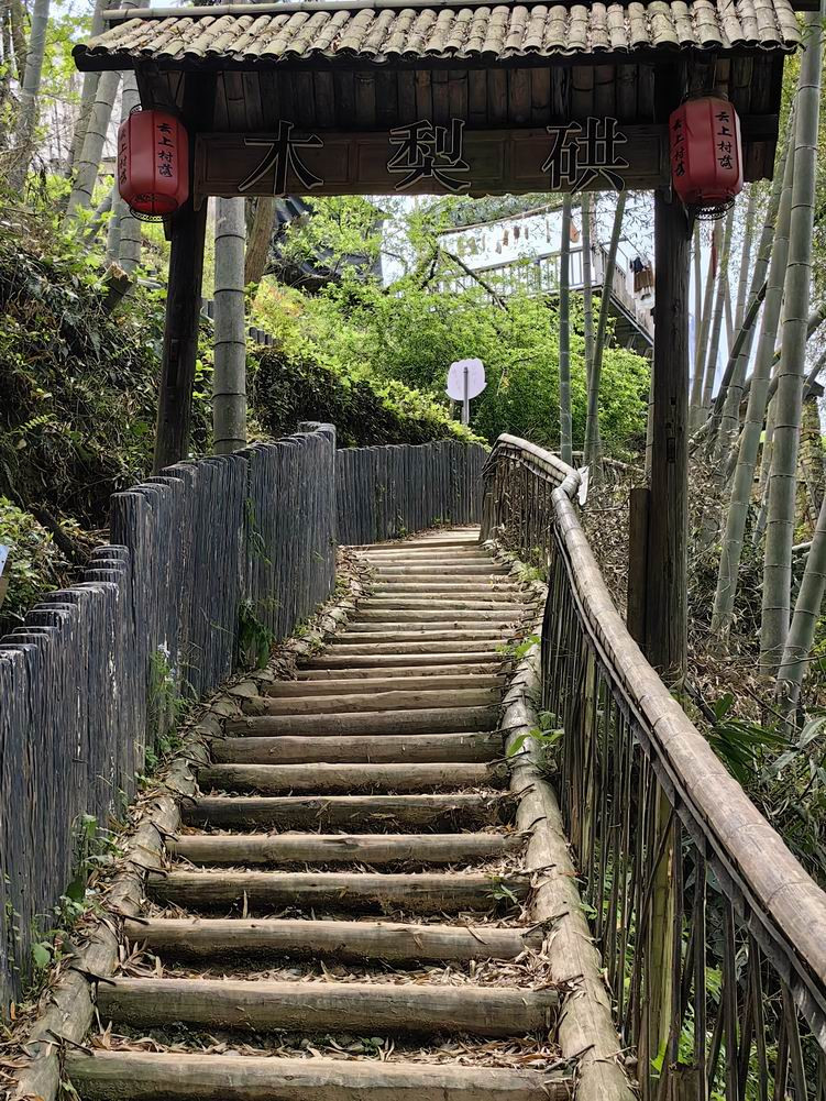 木梨硔村很隐秘,是徽州古镇中海拔最高的村落,要进村,必须要从一条藏在竹林中的木栈道上去,800多级,很考验体力。