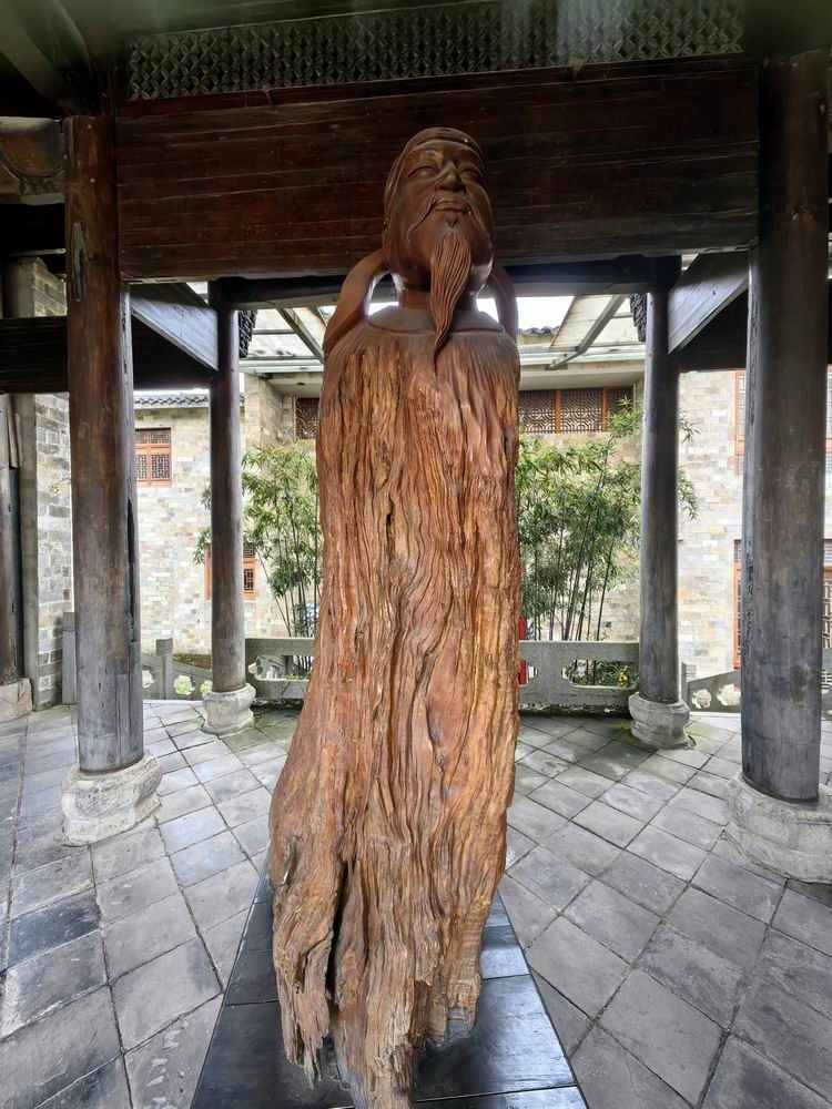 桃花潭景区因唐代诗人李白《赠汪伦》——“桃花潭水深千尺,不及汪伦送我情”这首脍炙人口的千古绝唱,而名扬天下。图为李白的木雕像。