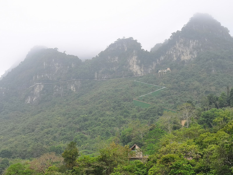 半山腰处弯折的曲线是上山的飞天魔毯通道,更高处紧贴着山岩像是开出一条路。