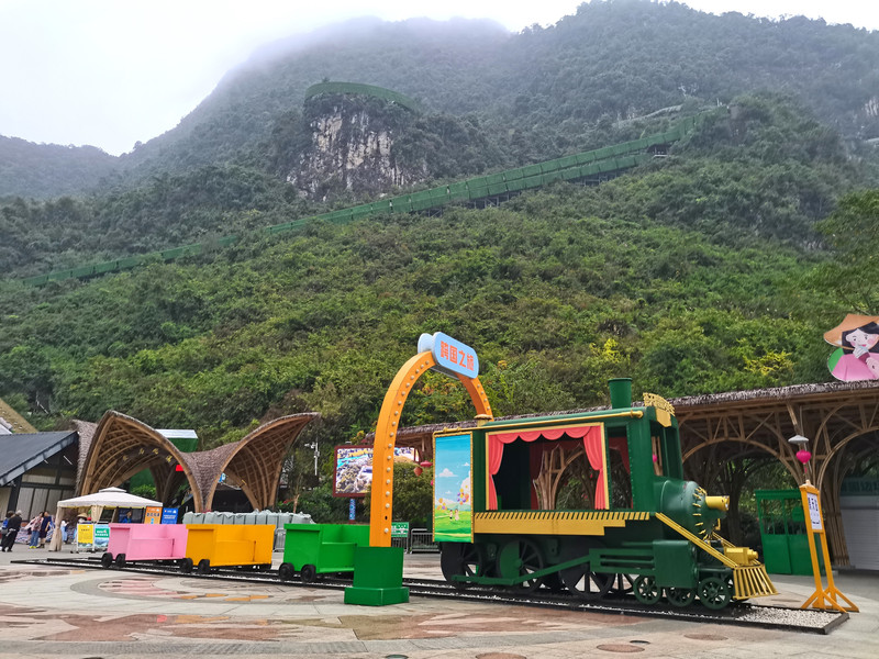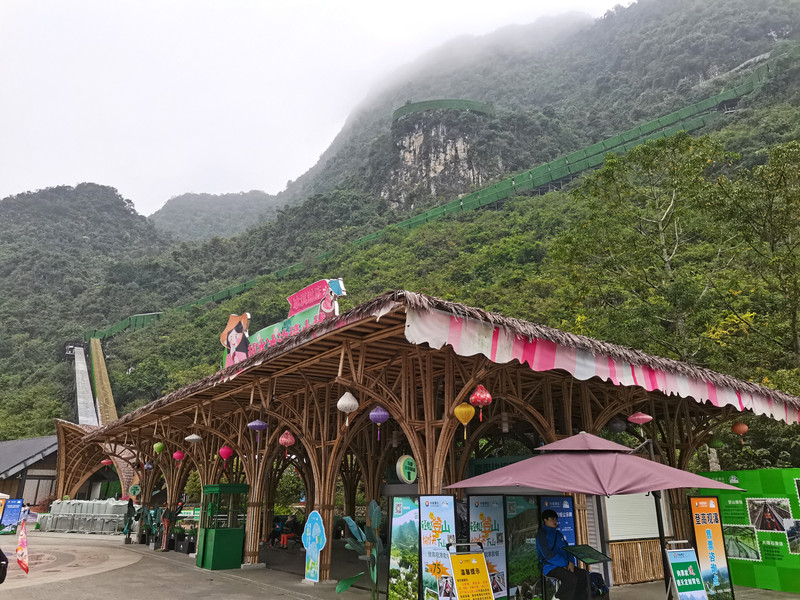 飞天魔毯只有上行,且在距山顶四分之三的地方截至,下来后仍需徒步攀爬不少台阶。下行需改乘大理石滑道,更为刺激。山上建有天空之城,有高空玻璃栈道。