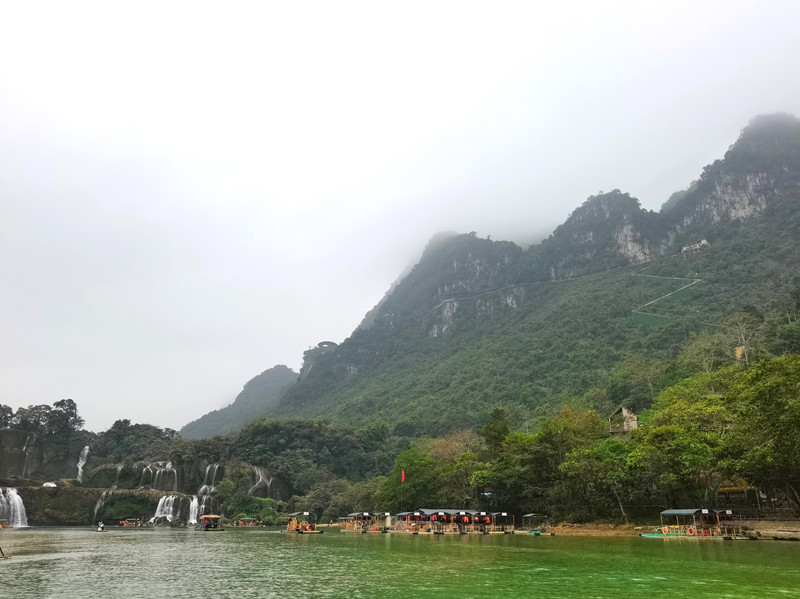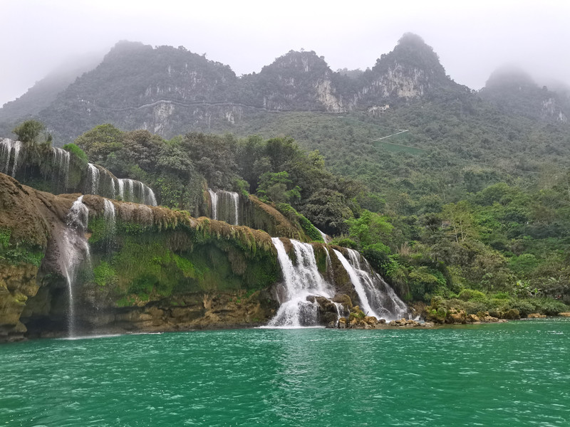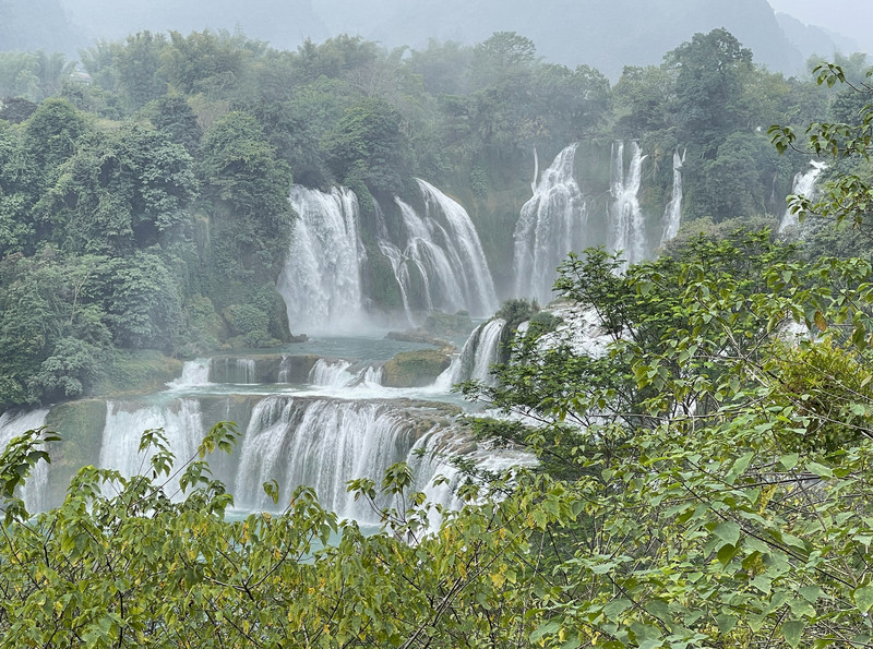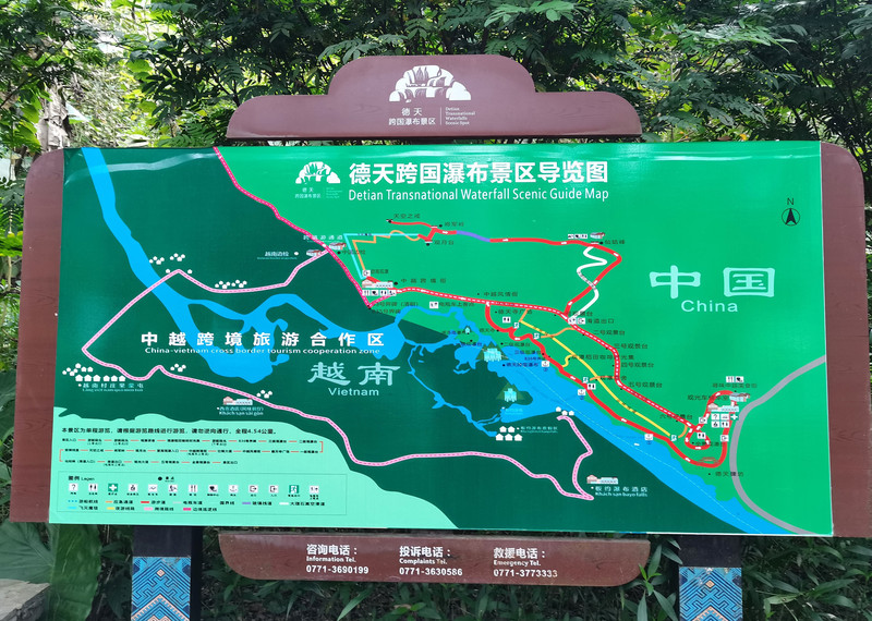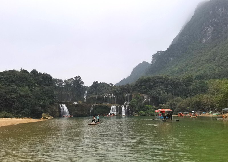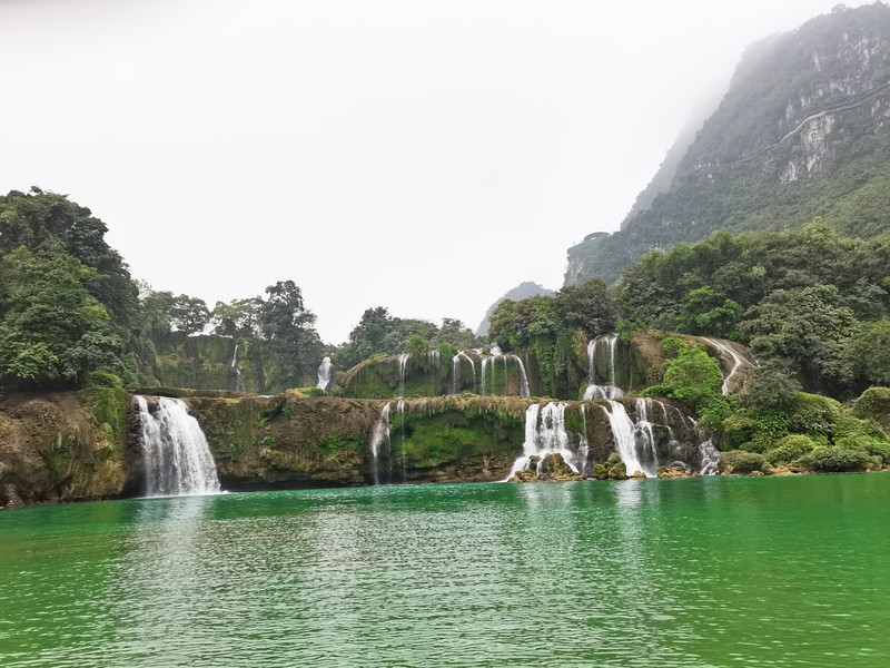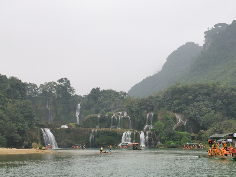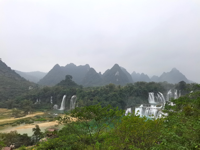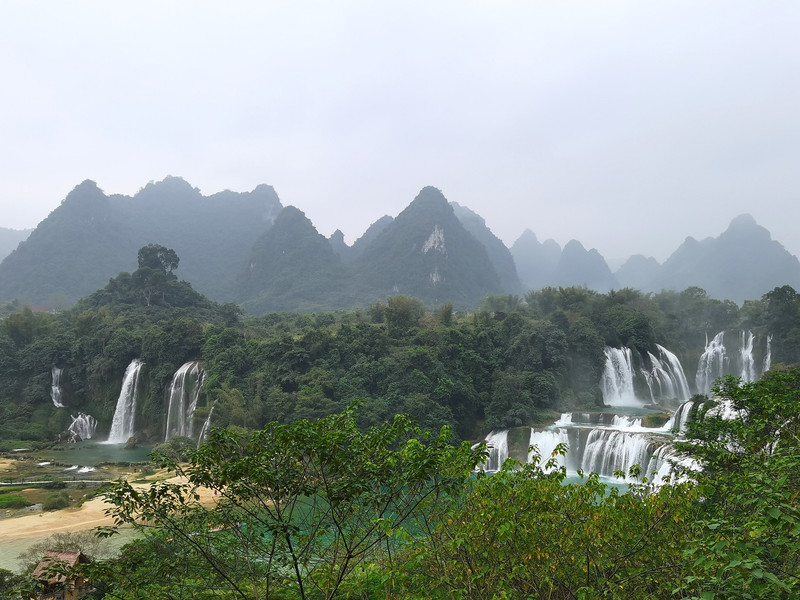 这里是中越跨境旅游合作区,据说瀑布的来水量由归春河上游的一方越南控制。那边一放水(不知是否定时),德天大瀑布立刻活力四射,气势磅礴,酣畅淋漓,颜值倍增。