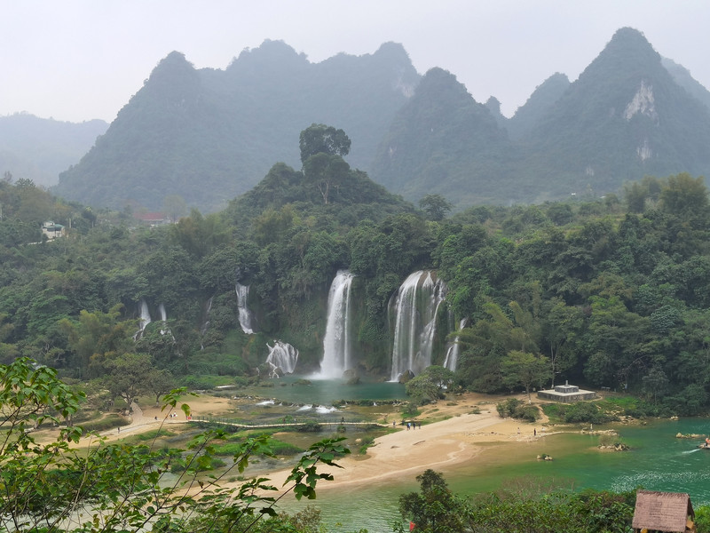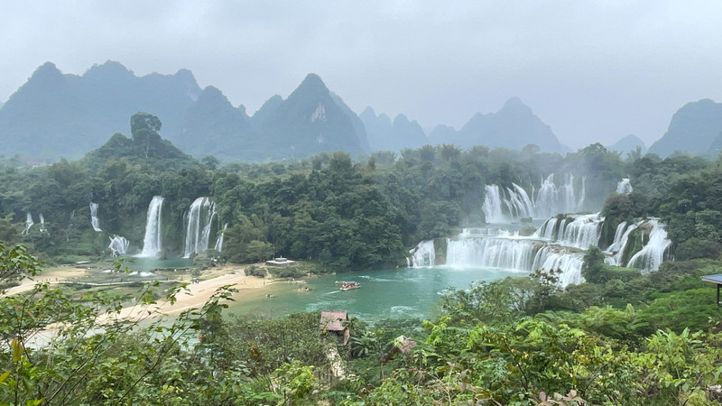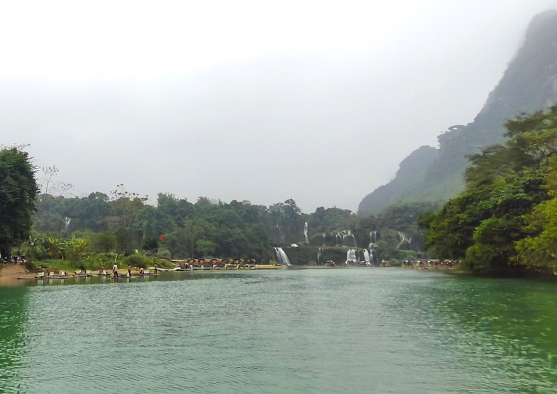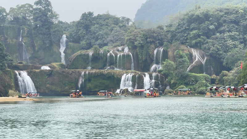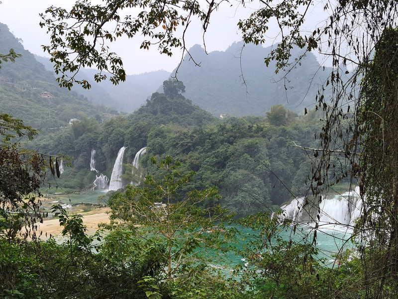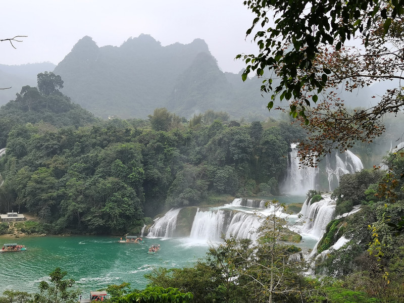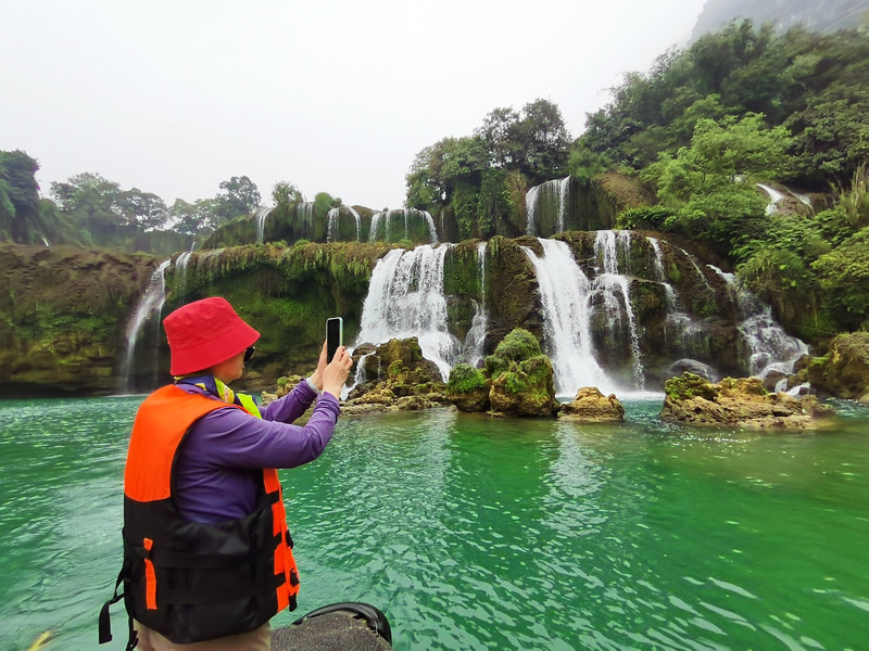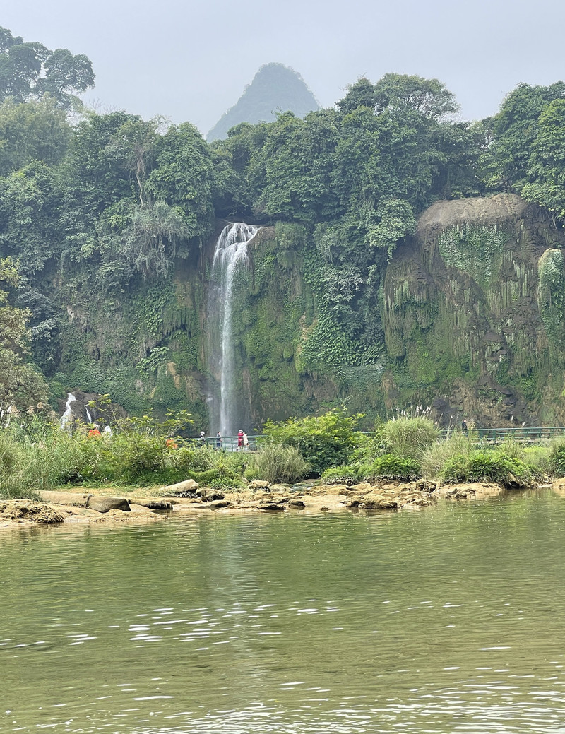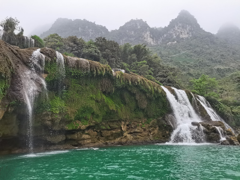 这里是中越跨境旅游合作区,据说瀑布的来水量由归春河上游的一方越南控制。那边一放水(不知是否定时),德天大瀑布立刻活力四射,气势磅礴,酣畅淋漓,颜值倍增。