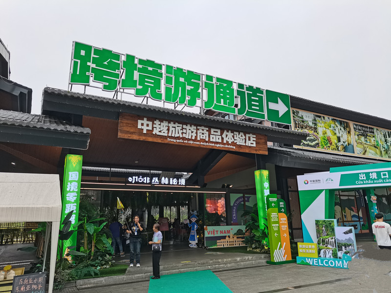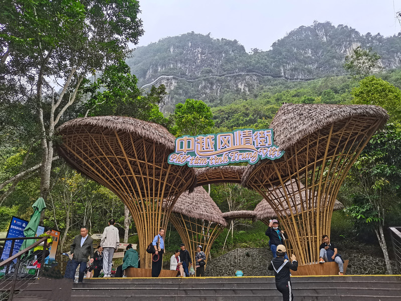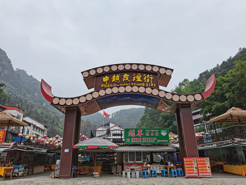 景区出口,一条中越友谊街,店铺鳞次栉比,人流熙熙攘攘。